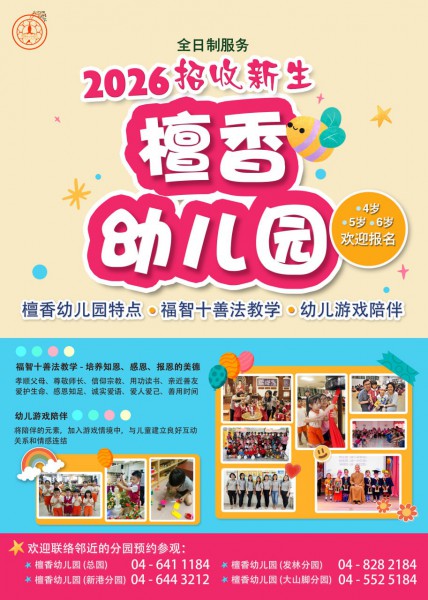 檀香幼儿园招收 2026 年新生 檀香幼儿园招收 4、5、6岁幼童 提供全日制服务! 欢迎预约参观 ! 联络电话: 总园:04-6411184(Bayan Baru) 新港分园:04-6443212(Sungai Ara) 发林分园:04-8282184(Farlim) 大山脚分园:04-5525184(Bukit Mertajam) 11955 reads