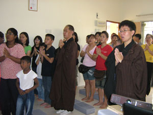 三皈依及回向后,大家在一起一面享用茶点,一面观赏卡通影片——《佛典故事 - 佛陀的诞生到涅槃》。