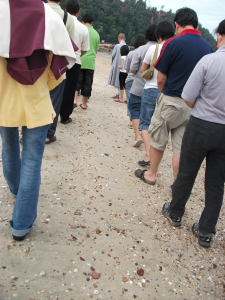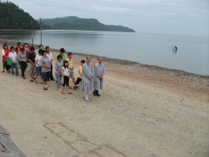 Submitted by sisi on Thu, 17/02/2011 - 18:33 Thjy News苏凤嫦净苑爱心家族於2010年12月25日到独立海滨一游,促进家族成员的互动与了解。 1)宁静的早晨, 等待涨潮的来临。3)沙滩行禅,放下妄想,只有现在。感受大海的伟大,自己的渺小。5)追忆行禅感受的当儿,有法师的叮咛。分享时刻,法喜充满。7)苦海无边.......自性众生誓願度,自性烦恼誓願断。9)起航!11)‘观音势至坐莲臺,接引上金階’13)Teluk Nipah( 直落泥巴)位于独立海滨的另一边。人烟稀少犹如世外桃源。15)还有一堆红石头与日来峰遥遥相望。17)回程中,我们在吉打港口凭吊海啸纪念碑,顺便拍照留念。2)大清早,爱心家族就已经凖備好了丰盛的爱心早餐。4)沙滩行禅,念念不离当下。6)父子俩在沙滩上放风筝,体验一下在都市生活里难得享受到的自由与开阔的感觉。8)大家快登船啊!我们要远行去了。10)登彼岸12)人间净土...班茶是独立海滨对面的一个扑素小鱼村。14)这里以黑石头闻名。寥寥无几的黑石头,会不会是世界遗产?16)大家就地坐在红石堆上, 看着对面在水一方的日来峰。 Log in to post comments3591 reads