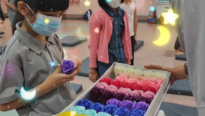 接下来是祈福环节,爱心老师恭敬的从师父手中接过灯,并传给每个小菩萨,灯灯相续。大家手捧心灯,用心忏悔并发愿,放下怨恨嗔恚与烦恼,永远跟随佛陀的教诲。
