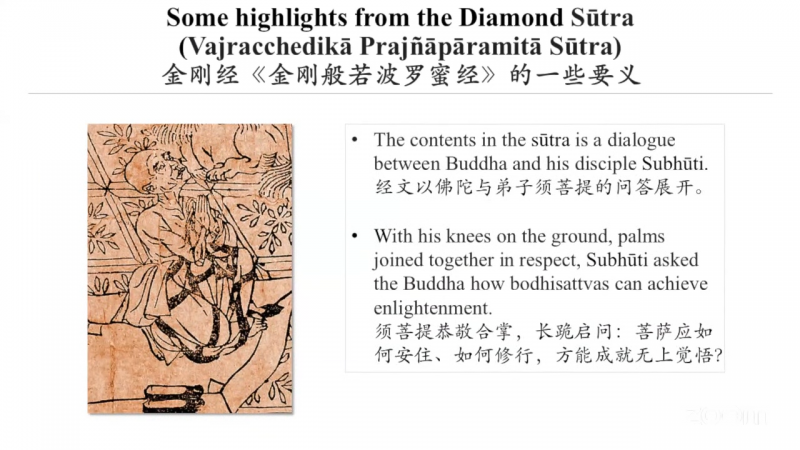 《金刚经》原本以梵文写成,于公元四世纪由鸠摩罗什尊者译为中文。