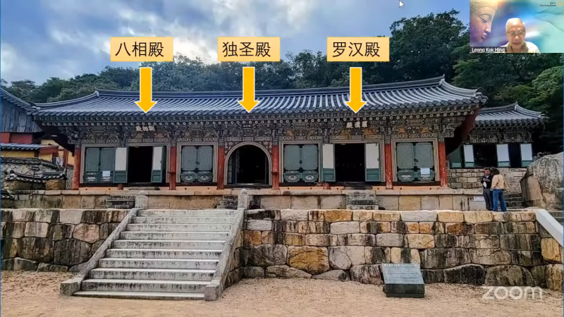 此外,这边有一座殿是三合一的,整个建筑分成三个部分,中间是「独圣殿」,两旁是「八相殿」跟「罗汉殿」。