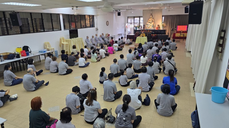早上八点半,大家集合于大悲殿。首先由住持真升法师慈悲开示。