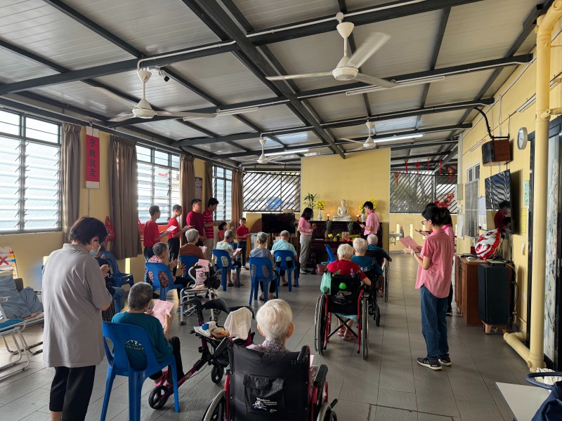 今年的“新春家庭普照”活动分为两支队伍,参与的团员多为小菩萨们。他们在初三早晨发心随同其他团员,一同前往槟岛八户佛友家中,送上新春祝福。