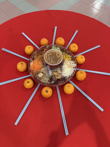 午宴在一片温馨中展开,餐点丰富多样,包括炒饭、寿司、素食肉骨茶、炸春卷及小蛋糕等,色香味俱全。用餐期间,众人更惊喜地为施萱庆祝农历生日,齐声唱起佛化生日歌,现场洋溢着满满的祝福与感动,让这个新春聚会更添一份温情。