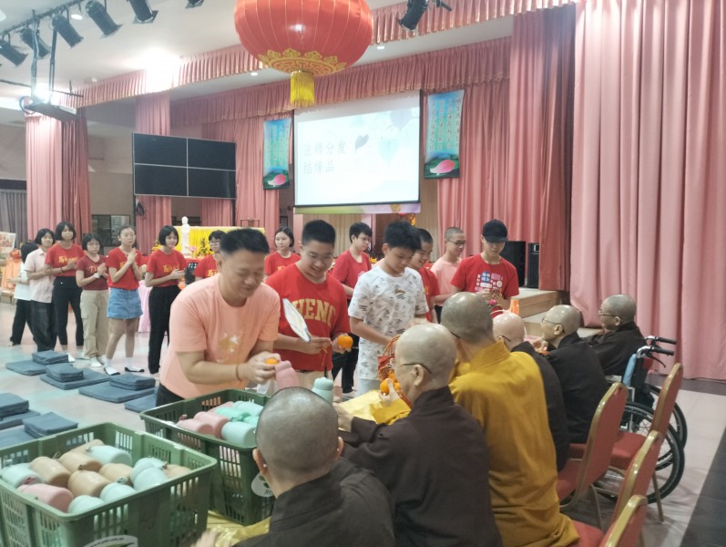 祈福会后,法师为出席者分发结缘品,包括精美水罐、钥匙扣、红包、柑橘及手链等,寓意吉祥圆满、福慧增长。紧接着,全体大合照留下珍贵的新春合影,为这场团聚留下美好见证。