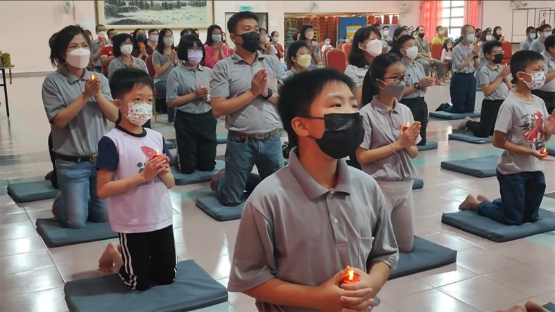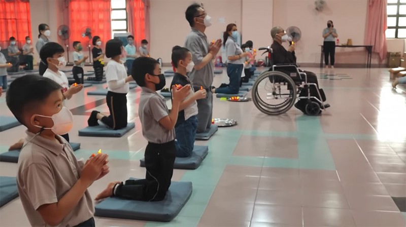 接下来是祈福环节,爱心老师恭敬的从师父手中接过灯,并传给每个小菩萨,灯灯相续。大家手捧心灯,用心忏悔并发愿,放下怨恨嗔恚与烦恼,永远跟随佛陀的教诲。