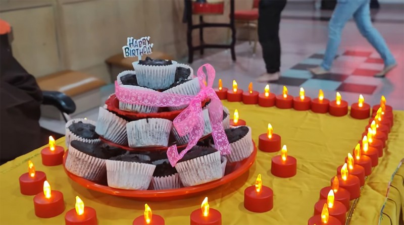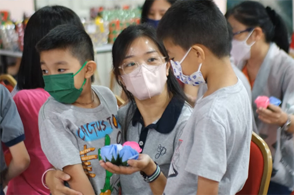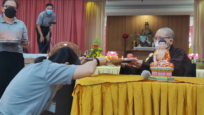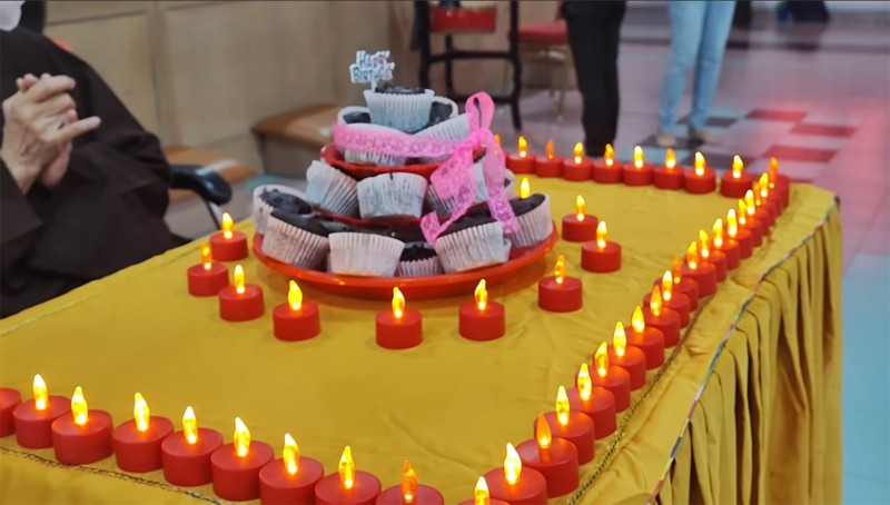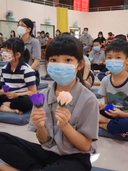 接着,大会为大家准备庆生会,大众在喜悦的佛化生日歌曲中带着感恩的心接受真信师父的祝福以及周日佛学班准备的花朵。