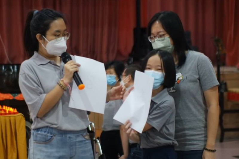 檀香青年团为小菩萨和家长策划了亲子游戏--你说我画。孩子们透过游戏发现,有时候我们说的话别人不一定能够理解,可能会有认知上的差异,所以不要随意猜测对方(父母或孩子)的想法与行为,应该多询问和要用良好的沟通,才能达到和谐的亲子关系。