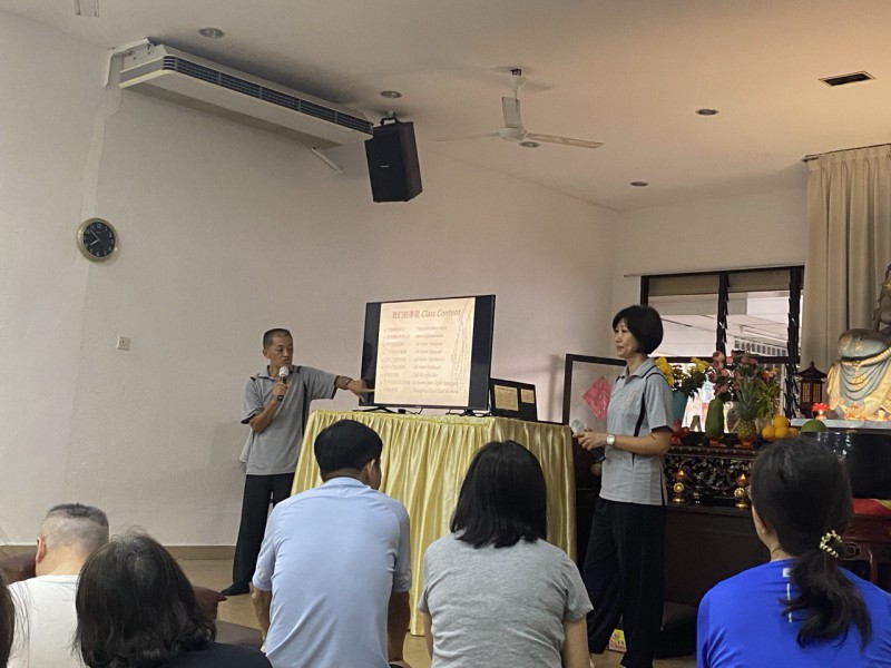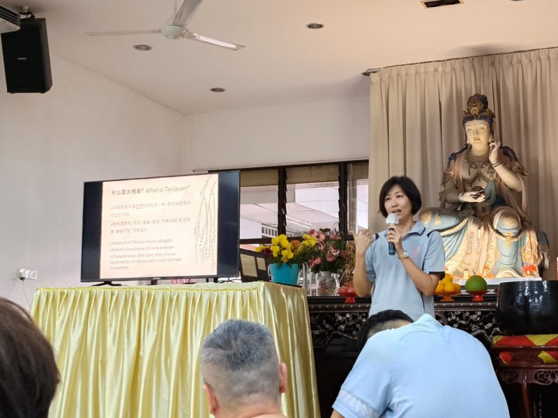 报名在大悲殿进行,随后由梁子露师兄以华语、李玲葑师姐以英语分别为新学员进行简报。内容包括太极拳的起源与理念,以及邓师父所传承的杨氏太极拳门派渊源。