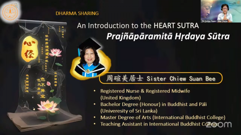 周碹美居士是一名在英国获得注册的护士和助产士,先后考获斯里兰卡大学佛教学士学位以及国际佛教大学硕士学位,目前于国际佛教大学担任助教。
