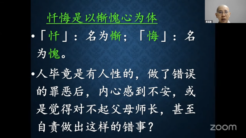 由于惭愧心的涌现,自然而然的要求忏悔,如不痛切地忏悔,以后再难以做人!