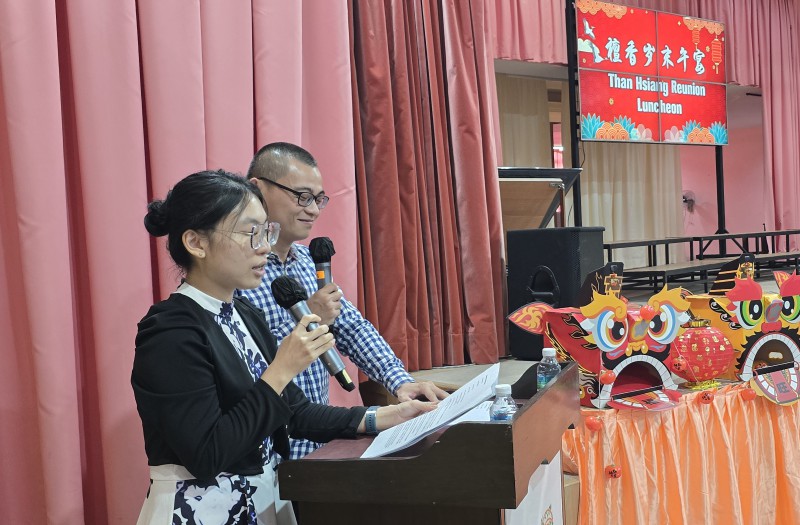 首先,两位司仪炽洲和佳惠欢迎大家出席2026年檀香岁末团圆午宴。在这一天,大家齐聚一堂,既欢庆团圆、迎接新年的到来,也共同感受这份和谐与喜悦。