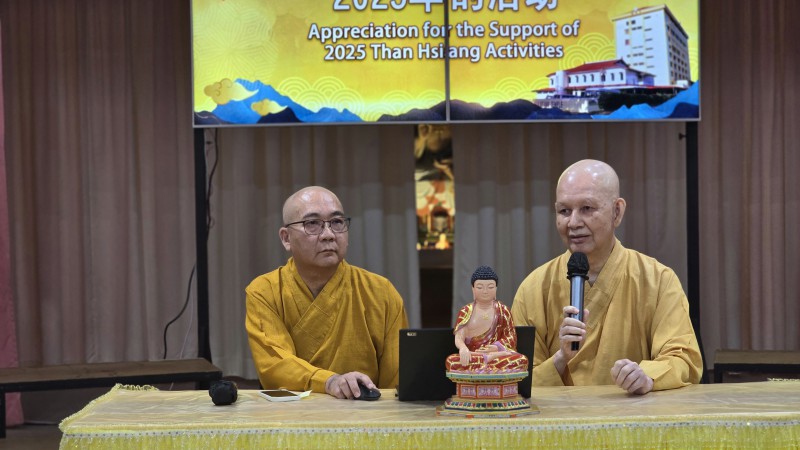 随后,唯悟法师回顾了2025年的活动,过去一年是活动最为丰富的一年。其中包括:2025年4月20日在菩提国民型中学体育中心举办的檀香佛教福利会40周年庆典;2025年6月举行的檀香寺新任寺务委员会改选;2025年10月11日在菩提国民型中学体育中心举办的菩提学校85周年校庆晚宴;以及2025年11月1日举行的檀香寺新任住持真升法师升座典礼。