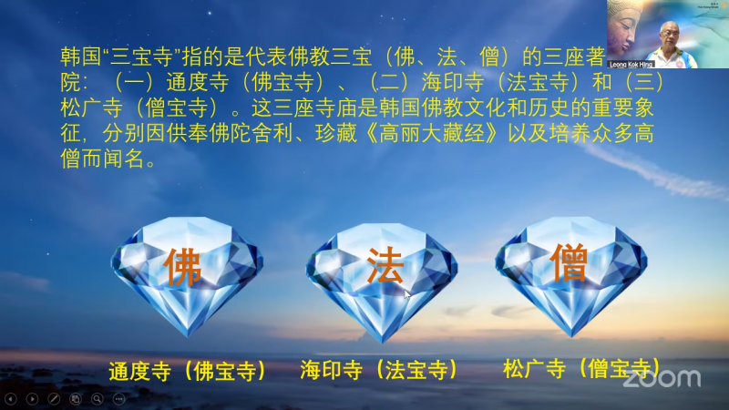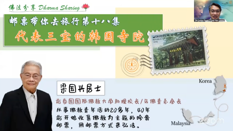 前国际佛教大学助理校长梁国兴居士分享「邮票带你去旅行(第十八集:代表三宝的韩国寺院)」