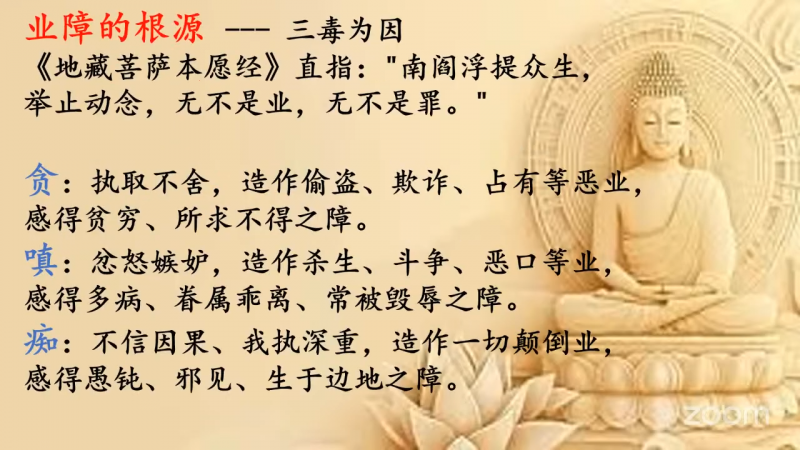 其中「业障」最为关键!——「烦恼」如种子,「业」如水土,「报」如果实。要断苦果,须从转「业」开始!