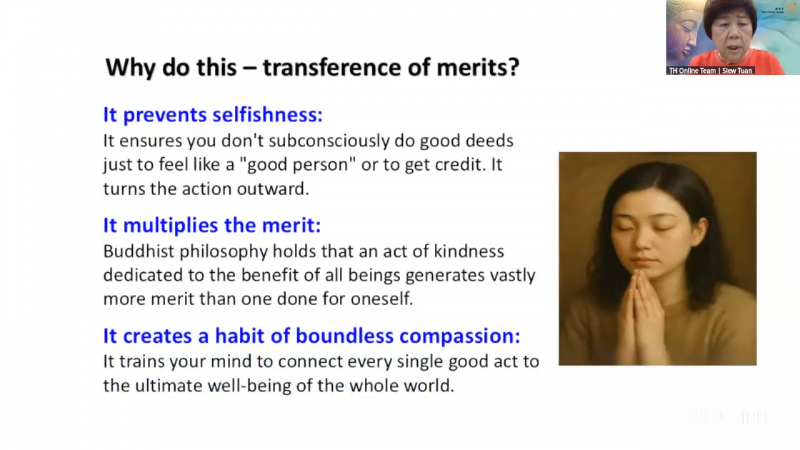 Voluntary Teacher at IBC, Sis H’ng Siew Tuan sharing " Transference of Merits "
