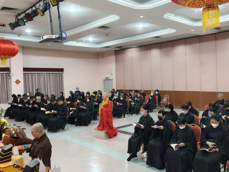 On the first day of the Lunar New Year, Than Hsiang Temple held a Chinese New Year One-Day Retreat in the fifth-floor Multi-purpose Hall. The program included Amitabha Buddha-name recitation, circumambulation, meditation, the noon offering ceremony, evening chanting, and a Dharma talk—all aimed at purifying the mind and welcoming the blessings of the new year.