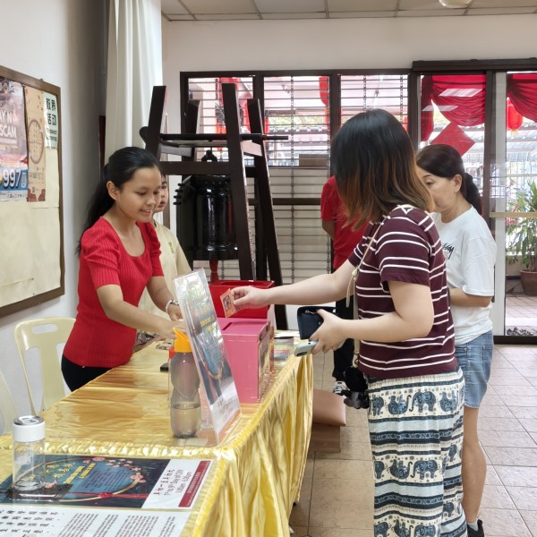 On the first day of the Lunar New Year, besides the retreat held on the fifth floor, the Great Compassion Hall on the ground floor also hosted a Sangha Blessing area, where devotees offered New Year greetings to the temple’s Sangha members and received blessings. The Great Compassion Hall also featured Strike the gong and make a vow section,fundraising booths for Wan Ching Yuen, registration for the Chinese New Year Lamp-lighting, and etc.