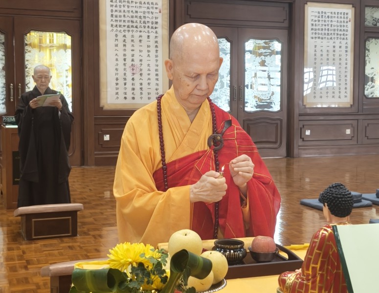 Venerable Hui Shan, lay name Ang Su Eng, was born in Malaysia in 1952 and is now 74 years old. Before ordination, she had already begun studying Buddhism. Since 2018, she diligently practiced Buddha-name recitation and actively participated in Than Hsiang Temple activities, such as the Eight Precepts Retreat and the Chinese New Year One-Day Retreat. She also frequently visited other temples for retreats and practice.