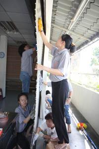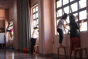 开示完毕后,各组组长开始分配工作,有者更自备了一些打扫工具准备“大展身手”。大家分工合作,不一会儿功夫就把檀香大楼打扫得干干净净。打扫过程虽然辛苦,但是大家仍然怀着一颗欢喜心进行大扫除的义务,眼前的勤劳都转化为充满法喜的心。