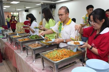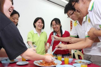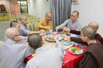 新年在即,因缘际会下菩提独中的全体教师于2月6日受邀请前来檀香寺与法师们共聚团圆饭。当天,共有24位老师及9位法师出席,共聚一堂享用团圆饭。此聚餐于中午11时30分开始,大众在新年歌的伴奏声中,欢喜地享用美味的自由式午餐。同时,大会也安排了简单的捞生仪式。
