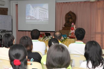 师父开示后,菩提独中蒋代校长献上果仪供养檀香寺的法师们。由于教师们当中一些是第一次前来檀香寺,因此,大家就趁此机会参观檀香寺大楼。此项活动约中午三时正结束,菩提独中教师们也怀着欢喜心离开檀香寺。