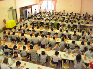 第四支香,小菩萨们在念佛号中步入斋堂用午斋,因为念佛跑香,小菩萨们也感觉到饥肠辘辘了。这次小菩萨是学习过堂吃饭。永华爸爸提醒小菩萨坐势要端正,脚步踏实地,要以惜福和感恩的心吃饭,要感恩农夫辛苦种菜米,让他们能品尝到饭菜的芳香。同时也要感恩爱心爸妈和年轻的行堂菩萨的护持,让学员们能够专心念佛,圆满半日修的念佛因缘!