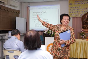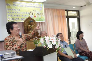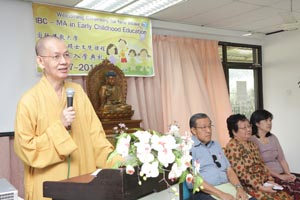 系主任金碧霞博士在致词时表示,学员们自立「终生学习」的信念很重要,他们拥有的不光只是一个大学生的衔头,而是拥有「专业能力」的幼儿教育者。金博士说,佛教大学是一所实践佛教平等、慈悲、开放精神的大学。每一个人都有平等学习的机会,只要凭各自的努力就可以达到最终学习的目标。此幼教课程的对象不仅是提供给幼教老师而已,校方也鼓励及欢迎家长或社会组织、福利团体等人士参与共同学习。