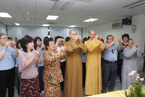 最后,唯悟法师带领全体教授及学员一起进行献灯仪式,第一届的的迎新开课典礼,就此即告圆满结束。