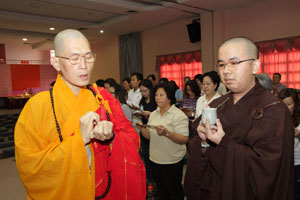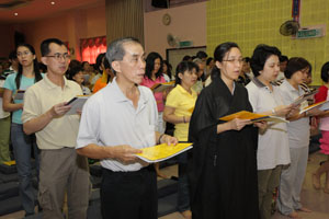 檀香寺于8月16日至8月21日(农历七月初七至七月十二)举行了一连六天的共修活动,诵念《佛说阿弥陀经》和持念弥陀圣号为主。每晚礼请常住法师们为信众开示,许多佛友们都把握共修机缘,抽空前来参与。【孝亲法会】又于8月22日(农历七月十三),上午九时三十分假五楼多元化礼堂启建。