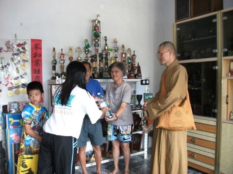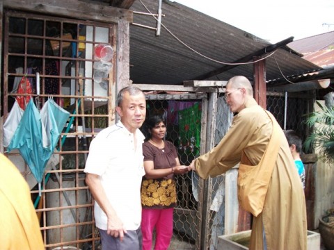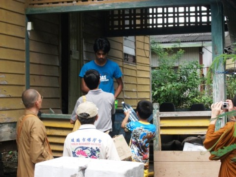 十一月十二日,檀香寺与玻璃市佛教会合办《玻璃市赈灾活动发放救济品》。