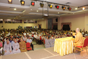开示中,唯悟法师也宣读了他写给敦林家属的一封信之部份内容。他表示:“参政者者必须立下为国家、为人民服务的志愿。敦林一生以无私的精神为国家服务,赢得了马来西亚子民们对他的尊敬,他是一名罕见的模范政治家。如果我们的参政者都能向他学习,我们的国家就有福了。”最后,唯悟法师也带领现场约千名信众,一起念佛回向功德给已故敦林苍佑医生。