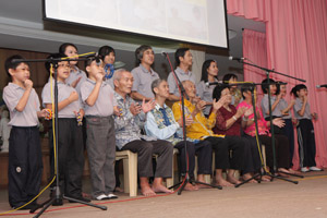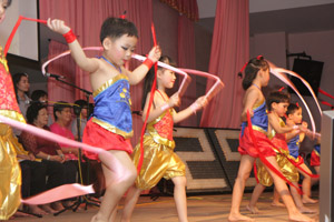 唯悟法师开示完毕后,《感恩之夜文娱晚会》正式揭起序幕。当天参与表演的团队来自檀香幼儿园、檀香青年团、善友之家、晚晴苑、周日佛学班、檀香净苑爱心家族、爱心福利中心人员、法音合唱团等等。文娱晚会的节目很丰富,包括了:各种舞蹈、戏剧、手语、独唱、合唱等多项节目。值得一提的是来自国际佛教大学,从泰国远道而来的泰国檀香基金会为大家呈献的泰国传统舞蹈。在文娱晚会当中,大会也带出了檀香寺的【四大信念】,即:“少有所学、壮有所用、老有所依、终有所归”。在这25年当中,檀香佛教福利会同仁,如一家人般融洽的相处,一直秉持着檀香寺的【四大信念】,走入社区,把佛法及爱心传达到社会各个角落。。