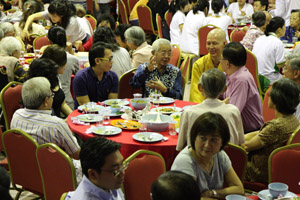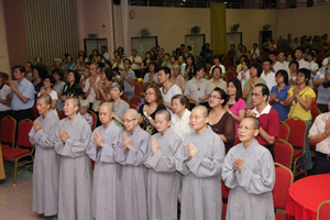 檀香佛教福利会于上周六(4-12-2010)庆祝25周年纪念《感恩之夜文娱晚会》暨《岁末团圆晚宴》。檀香佛教福利会仝人,于檀香寺五楼多元化礼堂,敬设素宴招待各界嘉宾及信众。当晚的人潮把五楼的礼堂挤得水泄不通,好不热闹。