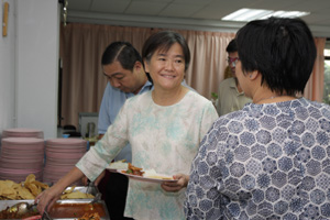 午斋过后,唯悟法师也颁发檀香职员服务奖,予檀香寺服务满五年以上的职员,大众在新的大悲殿里拍全体照,皆大欢喜。
