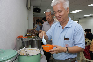 在腊八这一天,各佛寺都有吃腊八粥的习俗,腊八粥也叫"八宝粥"。檀香寺也不例外,在2011年1月11日庆祝"腊八节"时,厨房的职员菩萨准备了“八宝粥”供佛及大众,共同庆祝“佛成道日”。本寺住持及常住法师在上午十时三刻,集合在六楼大雄殿,举行佛前大供,过后又到大愿殿回向。
