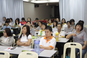 在这次的师资培训营,我们也安排了一些义工老师们进行教学示范。这主要是让大家对我们的课程有较深一层的了解,亦希望初加入我们行列的义工老师们能够掌握一些教学技巧。主讲者都很认真地示范,让大家明白佛学班并非沉闷的教学,而是可以用既活泼又生动的方式来进行的。