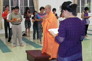 共修会不能少了佛法,洒净仪式进行之后,大众坐下聆听上真下信法师的慈悲开示。大家要得到快乐的“果”,就要制造快乐的“因”,不能只靠祈求或祝福就希望得到快乐。春节里大家喜欢互相道贺“恭喜发财”,但对佛教徒而言要发的是法财——七圣财,那是资助我们成佛的法宝。