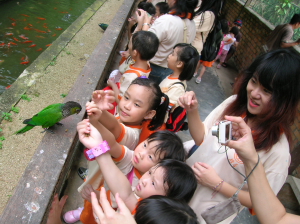 在飞禽公园里,除了看到各种各样鸟类,还可以看到许多爬虫类动物,例如大莽蛇、鳄鱼等。小朋友见了,都好紧张,甚为有趣!