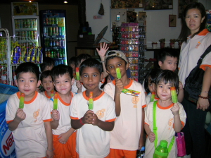 离开之前,老师们还带小朋友到礼品店参观,其中,老师们还贴心地买了冰淇淋给小朋友们。大家都吃得津津有味,流露出开心的表情。吃完后,大家就乘着巴士回到檀香寺。