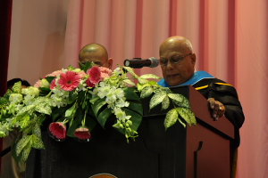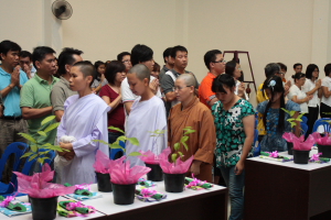 在国际佛教大学董事长唯悟法師、副董事长文卜禄博士、校长魏查理教授及名誉校长法光法师教授带领下,百多位热心人士随着司仪的指令,个个用小泥铲撮起一把泥土放入小树苗袋内。至此,国际佛教大学第四届毕业典礼,及‘千树一心护佛大’植树仪式也称得上‘功德圆满’了。
