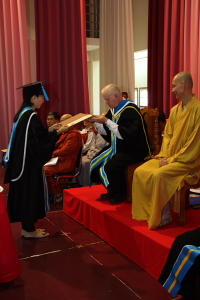 配合本届毕业典礼,国际佛教大学也于当天举行一个别开生面的“千树一心护佛大”室内植树仪式,以启发世人缅怀佛陀在两千六百多年前诞生于无忧树下、悟道于菩提树下及涅槃于娑罗双树间的因缘,并重视“树”与环境的关系。国际佛教大学董事长唯悟法師致词时指出,这个植树仪式象征四大意义: