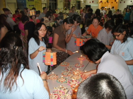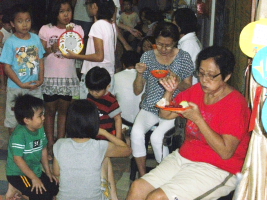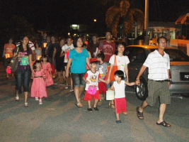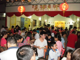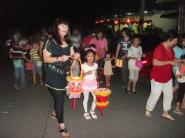 双溪大年檀香净苑于2011年9月9日晚上7点30分举行《中秋团圆共修会》。 约7点正佛堂大门已开始涌现人潮;有些小孩提着灯笼,大人捧着食物,一家大小笑脸盈盈来到檀香净苑 庆中秋。
