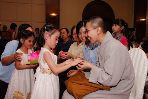 余兴节目表演过后,有一个意义深长的传灯仪式。师父、园长和老师们受邀上台与毕业生一起启亮电子灯。在《传灯》这首歌曲响起时,场内一盏一盏的电子灯在熄了电灯的昏暗大厅里点亮了起来,一盏一盏的延绵下去,像是流传了几千年的佛光一样照亮着大家。所有出席的来宾们也高举着小小的电子灯,一同高唱《传灯》。祈愿盏盏心灯,照亮自己也照亮他人!