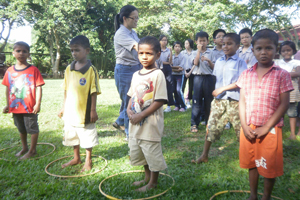 大众早上9时30分抵达目的地,把所带来的布施物品放到办公室后,友徳老师就安排小菩萨们与孤儿们在草地上一起玩游戏。大家玩得不亦乐乎。玩累之后,友徳老师就分发饼干给大家吃。