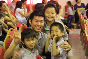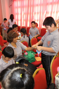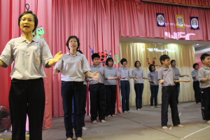 当天早上八点正,小菩薩们和爱心家族一起乘搭巴士出发到槟城檀香寺。途中,大家在巴士上练习手语表演,用心的爱心妈妈帮忙纠正小菩萨的一些小錯誤。约八点四十五分,我们高高兴兴地抵达檀香寺。由老师带领大家一起到檀香寺五楼多元化礼堂就坐。