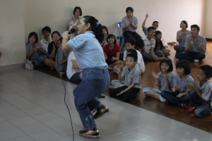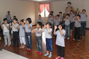 约早上10点30分,大家向老菩萨们道别后便到五楼的多元化礼堂,与檀香周日佛学班的师生们一起彩排结业礼与庆生会之手语。由于节目紧凑,我们便在陈老师的安排下,先到底楼用过午餐再回来继续彩排与定位。在整个过程中大家都把宝贵的时间掌握的很好。