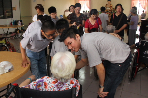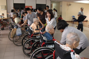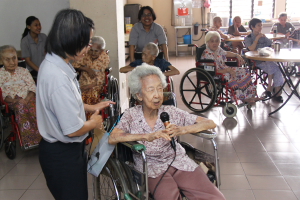 接着是与老菩萨们互动的时刻。和他们聊天,给于关怀与慰问;彼此交流得很开心。在离开之前,有一位96岁的老菩萨给了我们一句值得深思牢记的话: