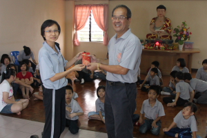 过后,我们步行沿阶梯上三楼去参观晚晴苑。首先,该苑主席曾健忠居士向大家简短的介绍整个晚晴苑的历史。接着,天真活泼的周日佛学班的小菩萨们为老菩萨们呈献了两首可爱又有活力的舞蹈和手语,分别是《阿爸牵水牛》及《爱心小菩萨》。看完小菩萨们的表演后,有一位老菩萨也很开心的与大家分享她动听的歌声,老菩萨为我们带来一首英文歌曲。
